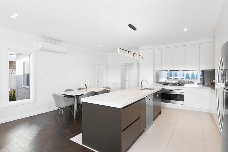 Situated in a prized blue ribbon address, this hamptons designed residence is an architectural statement to family luxury and entertainment. Exceptionally designed with quality finishes throughout, this opulent home impresses with its vast, open plan living zones extending onto an undercover alfresco area, perfect for entertaining. Stylish kitchen features a long island bench, gas cooking, dishwasher and double deep Frankee under mount sink.