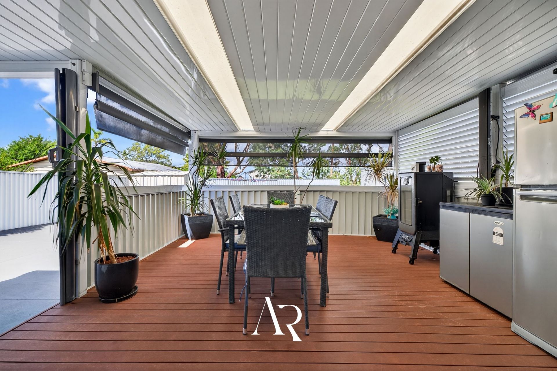 - Covered outdoor entertaining area, timber deck and large backyard with reserve access