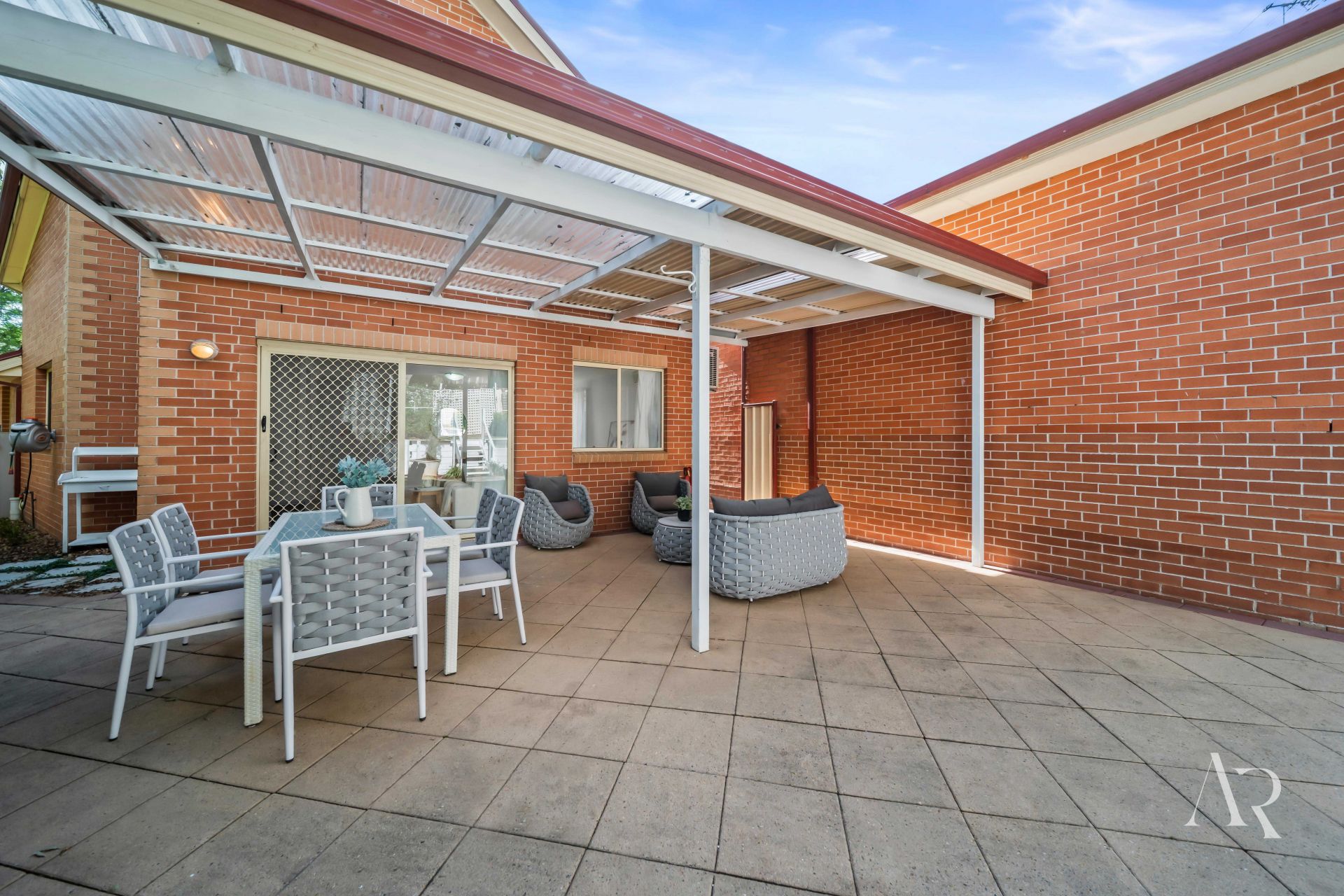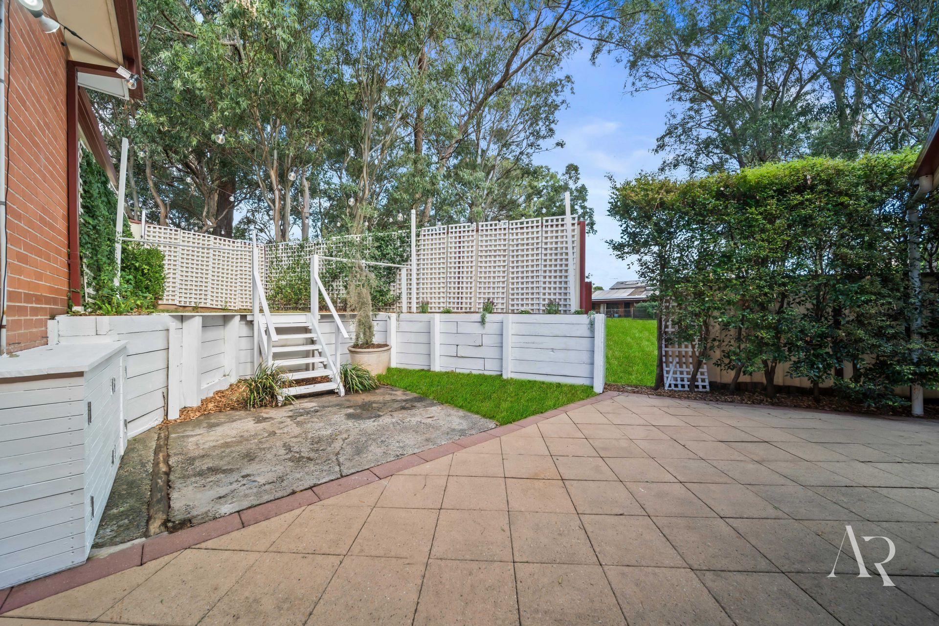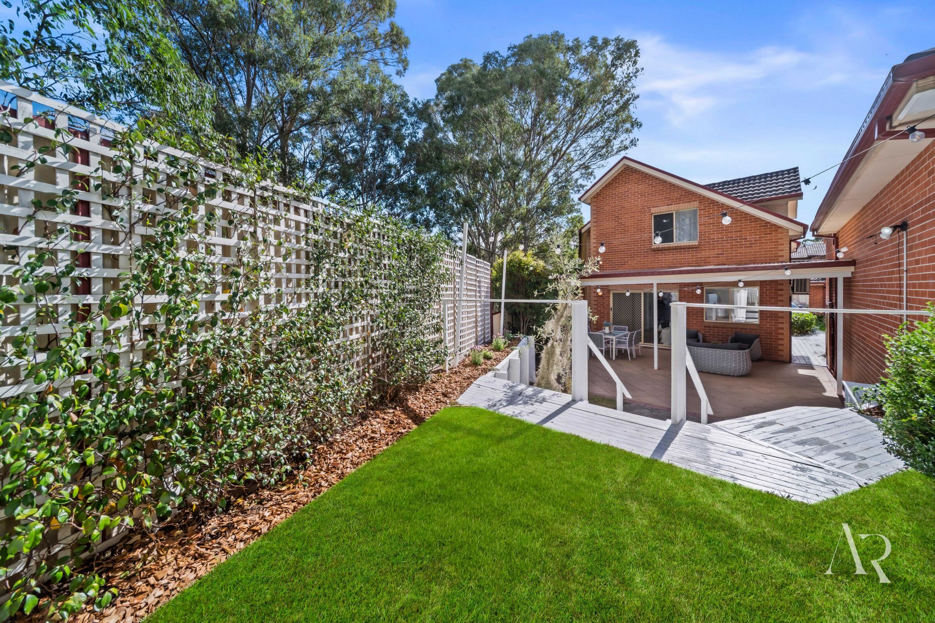 A prized north-facing orientation fills the interiors with natural sunlight, enhanced by two skylights and a well-considered layout for comfort and privacy. Open-plan living flows outdoors to a wrap-around backyard with pergola, patios, multiple access points, and a unique upstairs outdoor mezzanine ideal for gardening or quiet retreat.