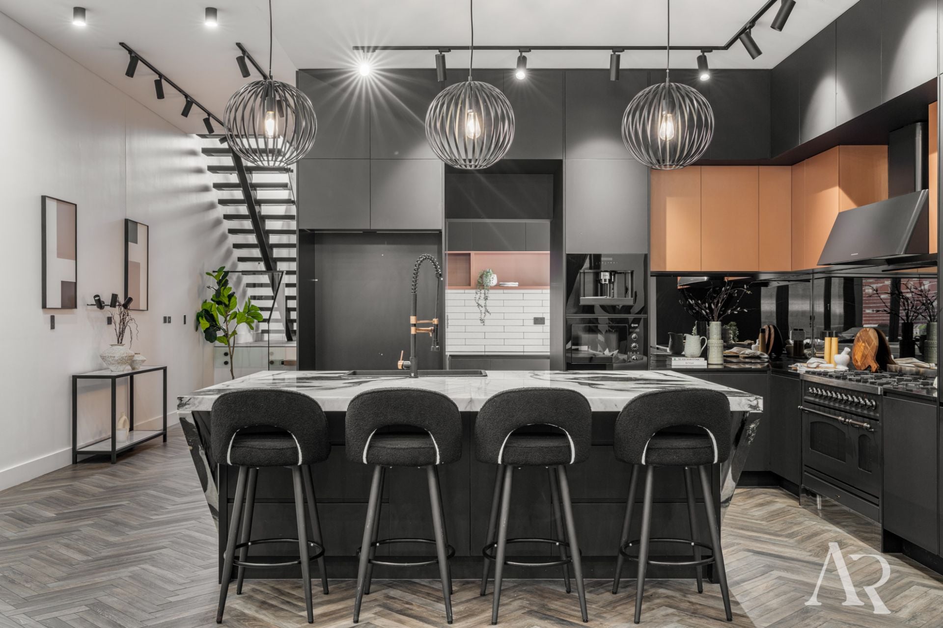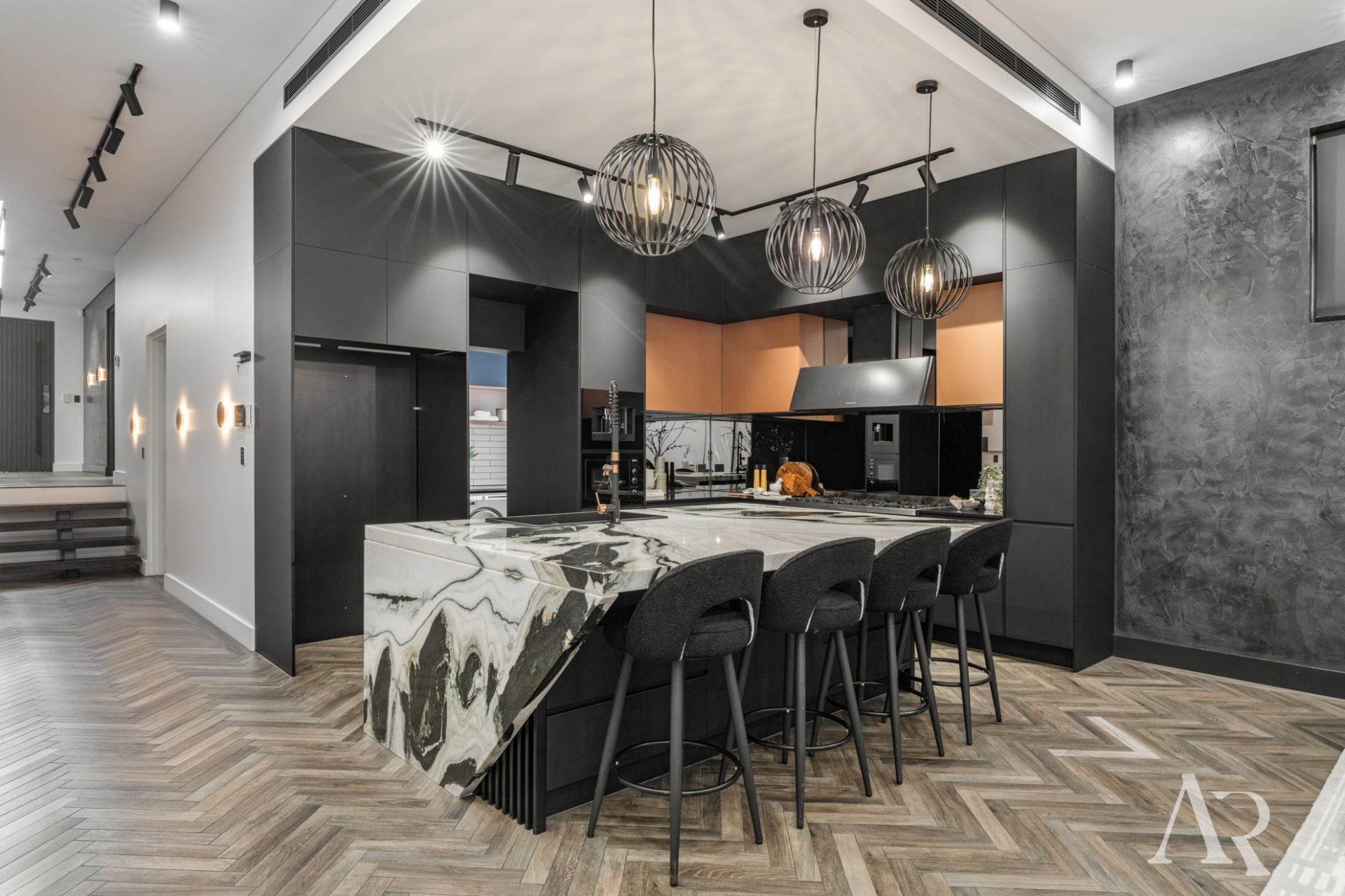 - Stunning designer kitchen appointed with elegant Panda marble finishes, bespoke cabinetry, premium stone benchtops, quality Ilve appliances, and a statement island breakfast bar